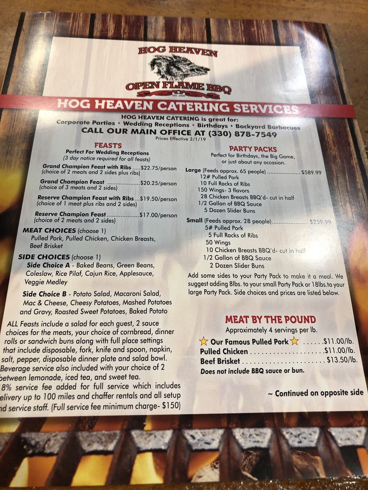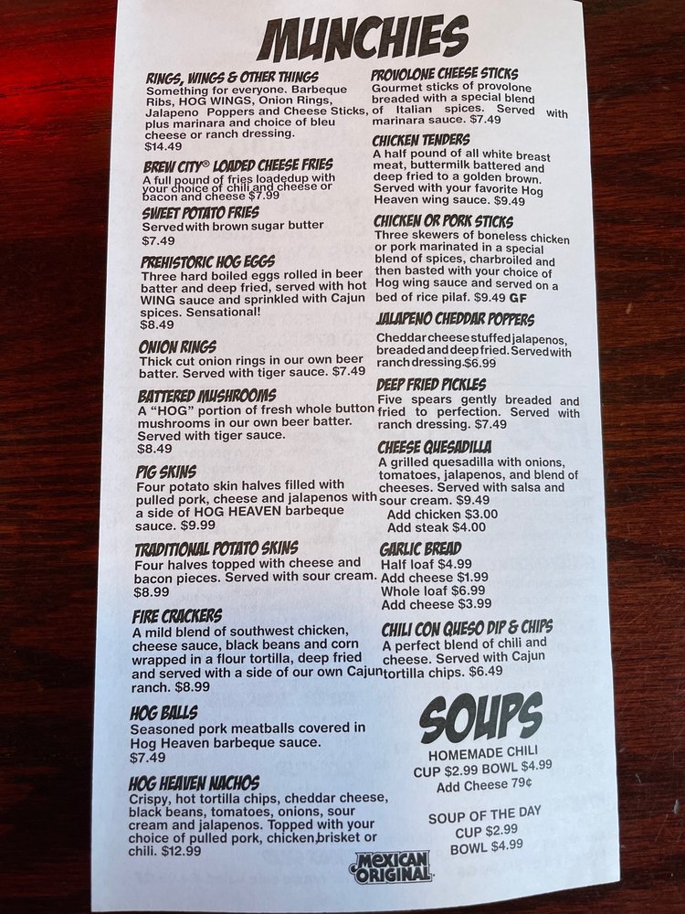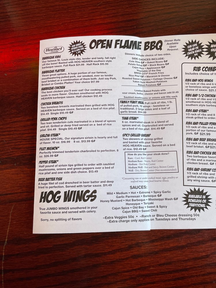 Customer reviews rave about the friendly staff, cozy ambiance, and generous portions. While some dishes might have room for improvement, the overall experience at "Hog Heaven" seems to be a hit among locals and visitors alike.